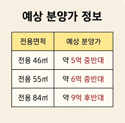 - 예상 평형 구성: 전용 46㎡ / 55㎡ / 84㎡