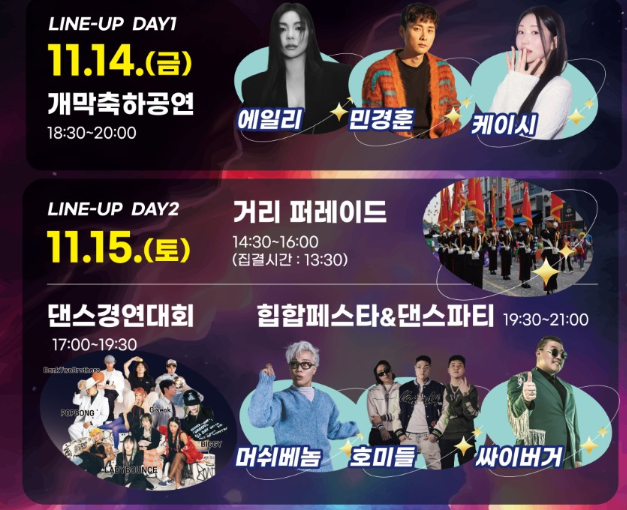 DAY 2|11월 15일(토) – 거리퍼레이드 & 힙합페스타
