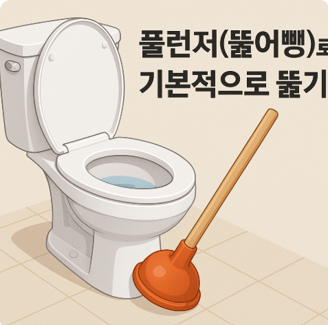 플런저로 해결되는 비율이 매우 높아요. 가장 먼저 시도해보세요.