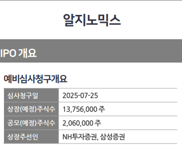 알지노믹스 공모주 청약 일정 및 상장일