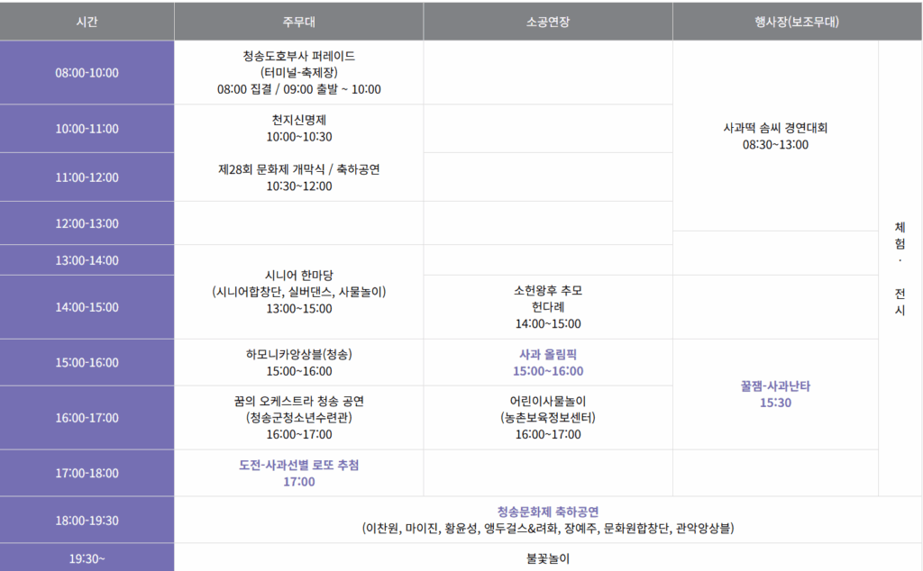 자연·문화·사람이 함께 어우러지는 지역 대표 축제예요. 청송사과축제 2025에서 만나요.