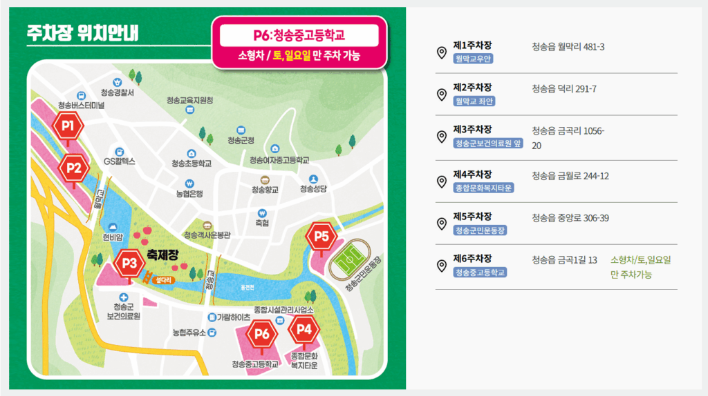 🚗 청송사과축제 주차장 위치 (P1~P6)
