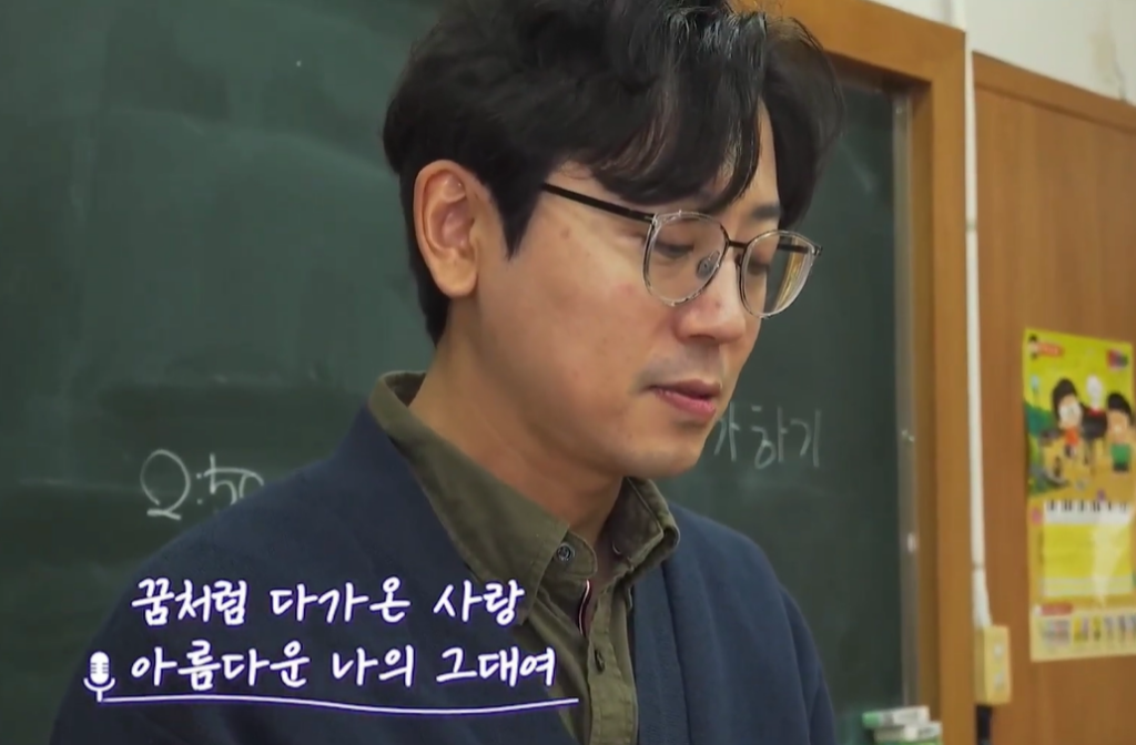 - 결혼 12주년 기념일에 초등학교 교실에서 꽃다발과 노래로 깜짝 이벤트