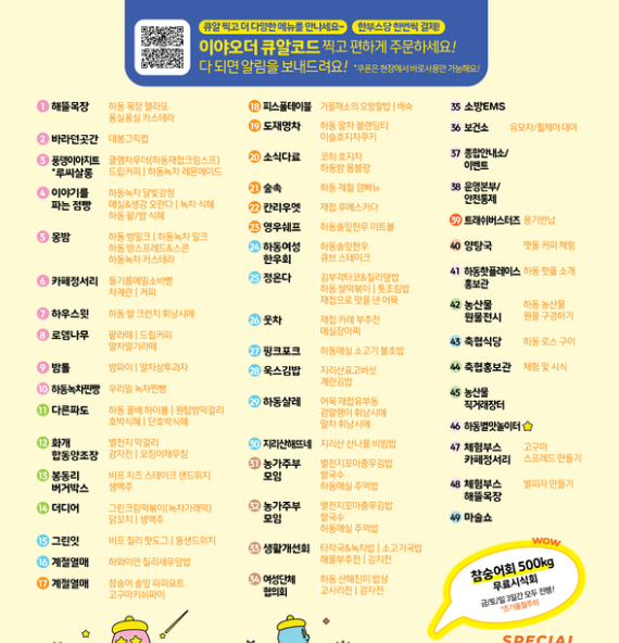 - 인스타그램 @hadong_eat 팔로우 후 현장 이벤트 참여 시 기념품도 받을 수 있어요.